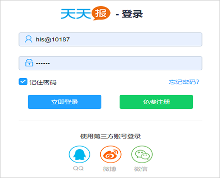 访问天天报官网(http://www.ttbrz.cn),点击右上角的“登录”按钮,即可进入【登录】界面,输入登录账号和密码后,即可登录天天报软件。